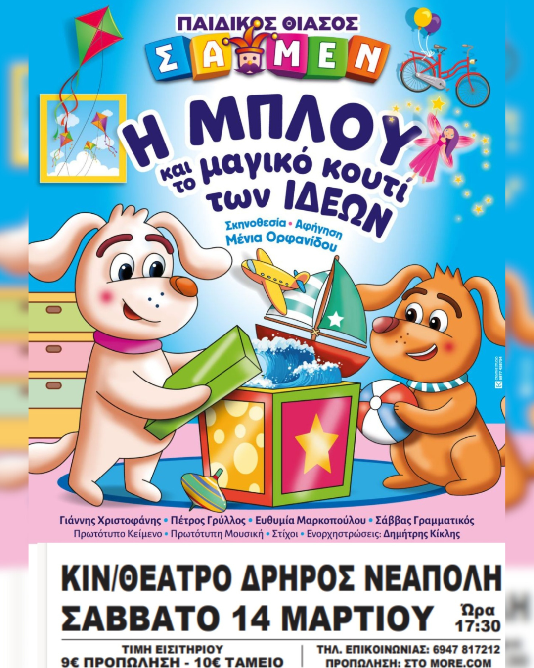 insert_link Local «Η ΜΠΛΟΥ και το Μαγικό Κουτί των Ιδεών» – Μια ξεχωριστή παιδική θεατρική παράσταση το Σάββατο 14 Μαρτίου στο Κινηματοθέατρο «ΔΡΗΡΟΣ» στη Νεάπολη todayMarch 9, 2026