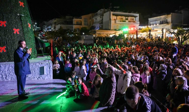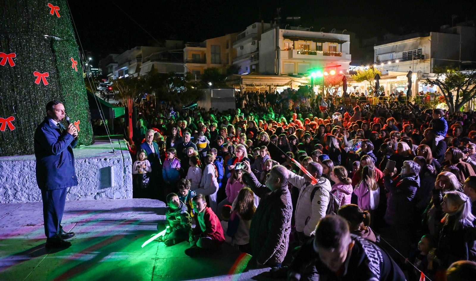 Αναφέρθηκε στη μακραίωνη ιστορία του μικρού βυζαντινού Ναού στον Όρμο του Αγίου Νικολάου, από τον οποίο πήρε το όνομά της η πόλη, και σημείωσε ότι η φωταγώγηση του δέντρου συμβολίζει την ενότητα και την ελπίδα – αξίες απαραίτητες σε κάθε εποχή.