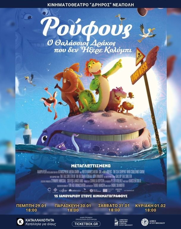 Με την ταινία «Ρούφους: Ο Θαλάσσιος Δράκος που δεν Ήξερε Κολύμπι» και το ντοκιμαντέρ «Οι Δικοί μου Άνθρωποι» που φέρνει στο φως την άγνωστη ιστορία των Ελλήνων Εβραίων κατά τη διάρκεια του Ολοκαυτώματος και του Β’ Παγκοσμίου Πολέμου -με επίκεντρο την Κατοχή, την αντίσταση και τον ηρωικό ρόλο που έπαιξε η εκκλησία συνεχίζονται οι προβολές στο κινηματοθέατρο «Δρήρος» στη Νεάπολη.
