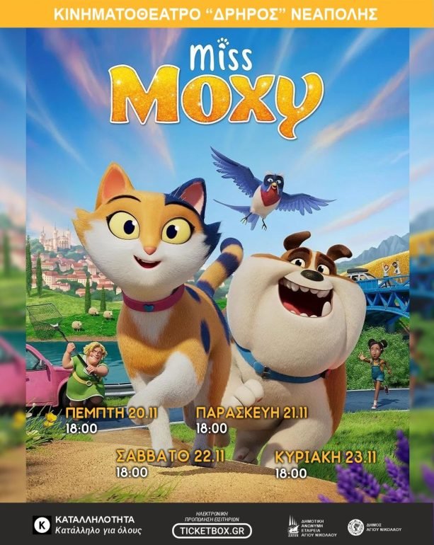 “Δεσποινίς Μόξι: Η Οδύσσεια μιας Γάτας” [Μεταγλωττισμένο] https://www.ticketbox.gr/ekdilosi/miss-moxy-driros/