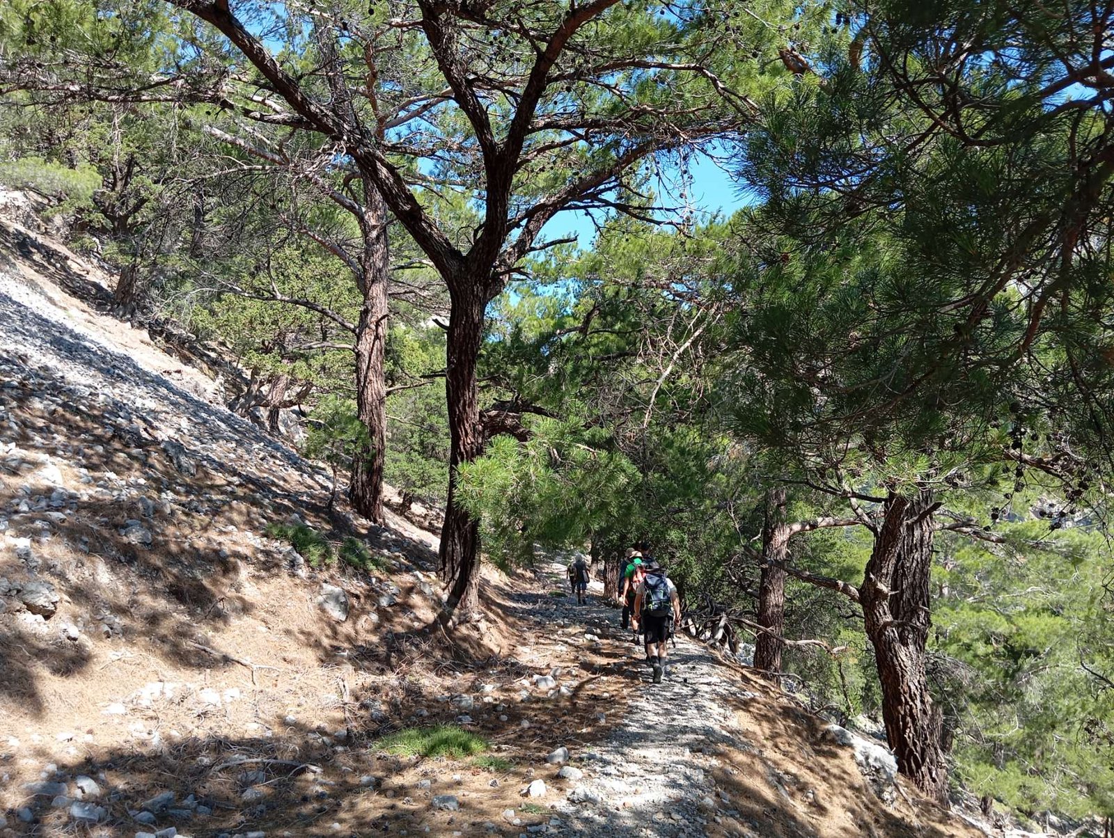 Αφήσαμε ένα αμάξι στο μνημείο των πεσόντων στην Αγία Παρασκευή και μεταβήκαμε στο χωριό Παρσά ή Μεταξοχώρι (ονομασία που δόθηκε προς τιμήν του Αρχιεπισκόπου Μελετίου Μεταξάκη που καταγόταν από κει). Από κει ξεκίνησε αυτή η πανέμορφη διαδρομή των 12 χιλιομέτρων παίρνοντας το μονοπάτι, που ένωνε το χωριό με τον οικισμό του Σελάκανου. Το μονοπάτι ελίσσεται στη δυτική άκρη του φαραγγιού και ψηλά μέσα σε πευκοδάσος. Χαμηλά βλέπουμε το φαράγγι του Παρσά ή Μπουφάνη ή Γυπαετών ή Σελάκανου…φαράγγι με πολλά ονόματα!!! Το δάσος που μας προσφέρει τη σκιά του είναι ενταγμένο στο πρόγραμμα Νatura 2000 και θεωρείται από τα σπουδαιότερα στη Μεσόγειο. Αποτελείται κυρίως από τραχεία πεύκη (Pinus brutia), ένα πολύ ανθεκτικό είδος που αντέχει την ξηρασία και ευδοκιμεί σε βραχώδη εδάφη. Έχει όμως και πρίνα, κυπαρίσσια, σφενδάμους, πλάτανους… κ.α. Είναι ακόμα ο μεγαλύτερος μελισσοπαραγωγικός τόπος του νησιού!!!