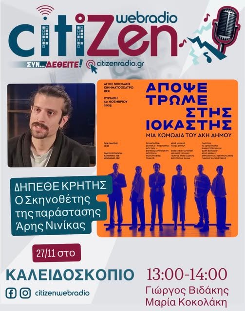 insert_link Συνεντεύξεις Απόσπασμα εκπομπής Καλειδοσκόπιο 27 11 2025 – Άρης Νινίκας ΔΗ.ΠΕ.ΘΕ.Κρήτης todayNovember 27, 2025 4